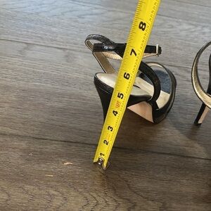 CAPARROS Round Open Toe Black and Clear Ankle Strap High Heels |9B