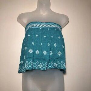 CAPE JUBY BY AEROPOSTALE STRAPLESS TEAL/WHITE EMBROIDERED BOHO TOP SIZE XS IN EXCELLENT CONDITION!