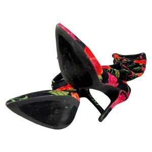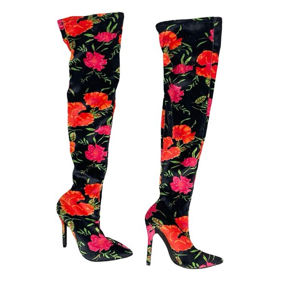 CAPE ROBBIN Boots Black Red Flowers Over the Knee Heels Velour Fabric Size 6 M