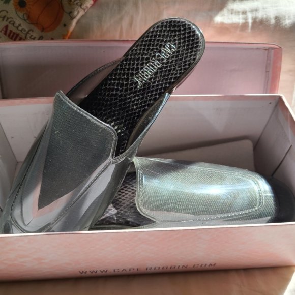 Transparent square toe jelly flat mule. Shoe has NEVER BEEN worn !! In AMAZING condition !!