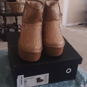 ⚠️PLEASE DO NOT MISREAD THE CONTEXT OF THIS LISTING FOR ONE (1) PAIR OF CAPE ROBBIN PLATFORM STUDDED BOOTIE, SIZE 9 COLOR CAMEL WITH GOLD STUDS