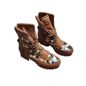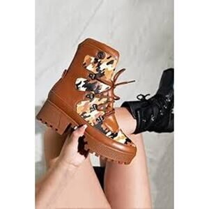 CAPE ROBBIN WOMEN'S NUNCA ROUND TOE LUG PLATFORM COMBAT BOOTS CAMO BROWN SIZE 10 IN GREAT CONDITION.