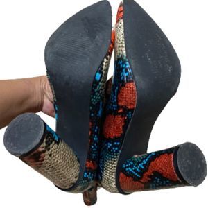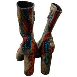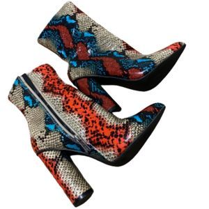 CAPE ROBBIN WOMEN’s MULTICOLOR SNAKE-EMBOSSED LEATHER ZIP UP HEELED BOOTS Sz 7.5