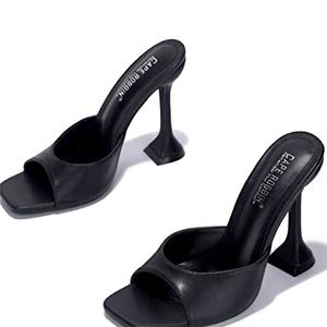 this is a beautifully, stunning heel ......throw these on to dress up a casual outfit, Like a hot pair of denim jeans, A black button down and a Hot bralette. BLACK SQUARE TOE$ W/ square heels