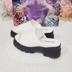 CAPE Robbin Mamo White/Blk Open Toe Chunky Heel Sandals Size 6