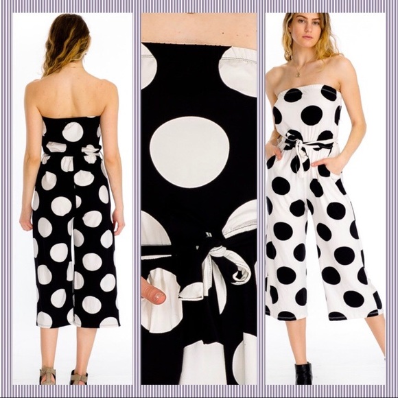 💥Cute Polka dot romper/ black with white dots, knit fabric, 92% polyester, 8% Spandex