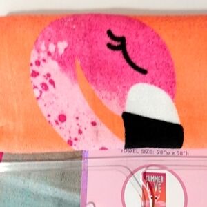 CAPELLI NEW YORK Pink Flamingos Summer Love Beach Towel Pool Towel Swimsuit Coverup Size 28"W x 58"H NWT