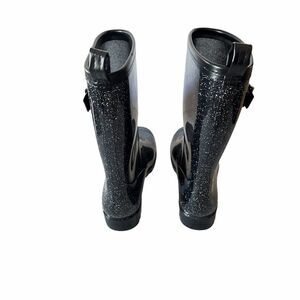 CAPELLI Womens Black Glitter Mid Calf Weatherproof Wellies Rain Boots US 6