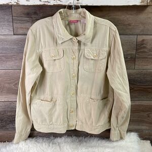 CAPPAGALLO Button Up Tan Cargo Style Cotton Jacket Shirt Women's Size Large
