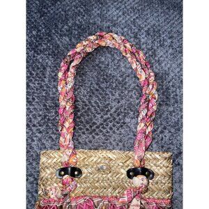 CAPPELLI Straworld Rattan and Multicolor Tiered Ruffles Double Top Handles Bag