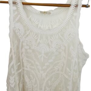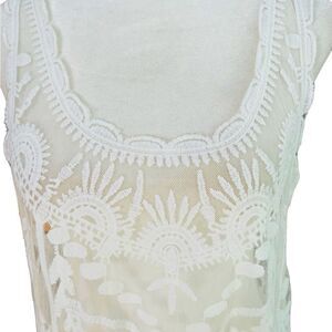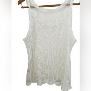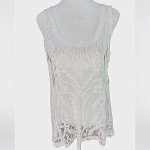 CAPRI ivory semi sheer embroidered tank top size S. Scalloped hem and straps.