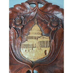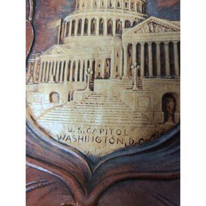 Capsco US Capitol Washington DC Carved Wood Plate Tray Collectible Souvenir 9"
