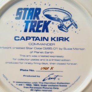 STAR TREK CAPTAIN KIRK LIMITED EDITION COLLECTORS PLATE.