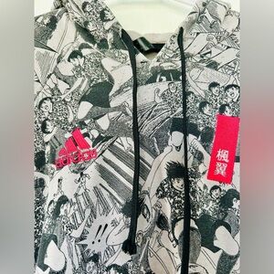 Questions? Leave a comment below! EUC, classic manga tells a story of unity. The well loved soccer manga leaps off the page and into this limited edition Adidas hoodie. The names of its 2 stars stand out on the chest in red over the graphic print.