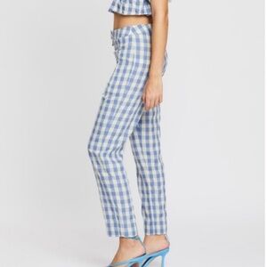CAPULET Revolve Keeley Plaid Gingham Blue White Straight Trouser Pants L
