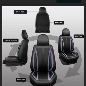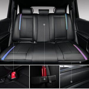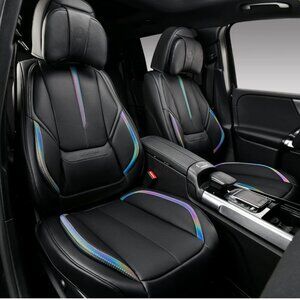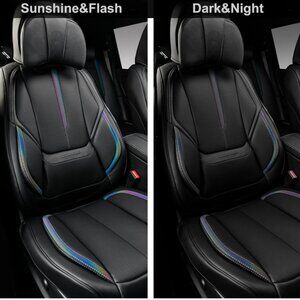 CAR PASS Nappa Leather Car Seat Covers Full Set, 5 Seats Universal Seat Covers for Cars, Waterproof Luxury Lumbar Support Front and Rear Seat Cover for Sedan SUV Pick-up Truck, Black Rainbow Chameleon