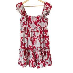 CARA CARA Lexa Floral Tiered Smocked Mini Dress Raspberry Pink White,Large