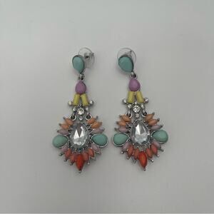 BOUTIQUE Earrings DropDangle Rainbow Pastel Silver Gemstone Rhinestone Cocktail