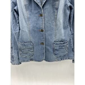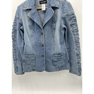CARAMBA Y2K Fitted Ruched Trim Medium Light Denim Jacket Women’s Size Medium