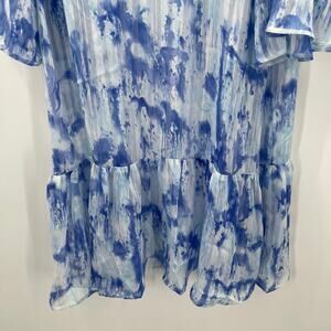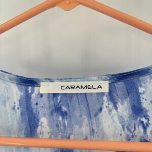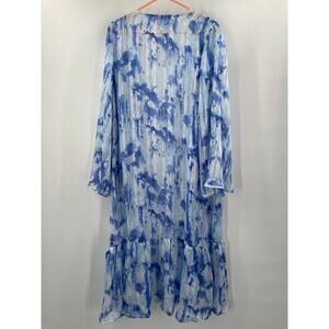 CARAMELA Beach Coverup Small Blue Watercolor Longline Open Cardigan Sheer Resort Duster Kimono