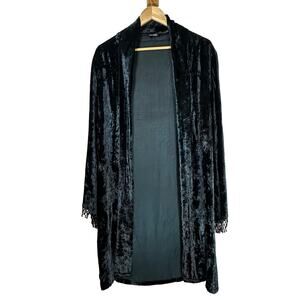 This vintage crushed velvet duster features dramatic beaded bell sleeves and a luxurious, flowing silhouette, perfect for adding a witchy goth vibe to your wardrobe. Its rich texture and ethereal design make it an ideal statement piece for any special occasion or layered look.