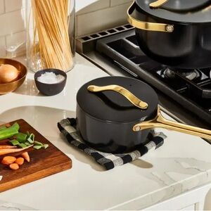 CARAWAY NON-STICK CERAMIC 1.75 qt MINI SAUCE PAN BLACK & GOLD. New in box.