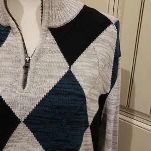 CARBON 1/4 Zip Argyle Sweater Green/Gray/Black Size Large