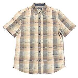 CARBON 2 COBALT Blue/Beige Overlook Jacquard Effortlessly Cool Button Shirt Men's Size Medium