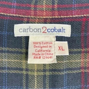 CARBON 2 COBALT Men's XL Cotton Collared Button Down Shirt Plaid Blue Red Yellow