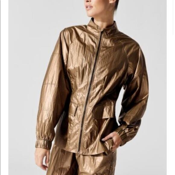 NWT Carbon38 Gold Crinkle Track Jacket Lace Back