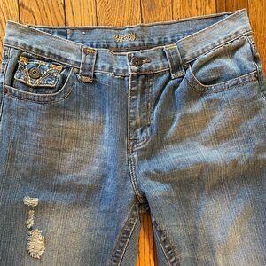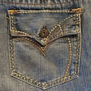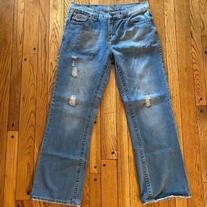 Like new Carbon vintage 34 x 32 button flap pocket distressed medium wash straight leg jeans. EUC, great shape, size 34x32, cotton blend, see pictures for details.