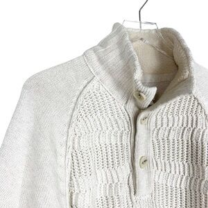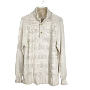 CARBON2COBALT Ivory Cable Knit Sweater Mock Neck Henley Button up Men's Large