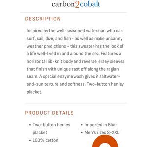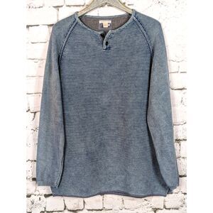 CARBON2COBALT Waterman Henley Pullover Knit Sweater Heavy Comfy Blue