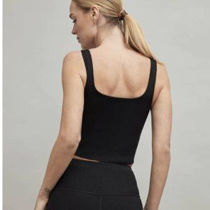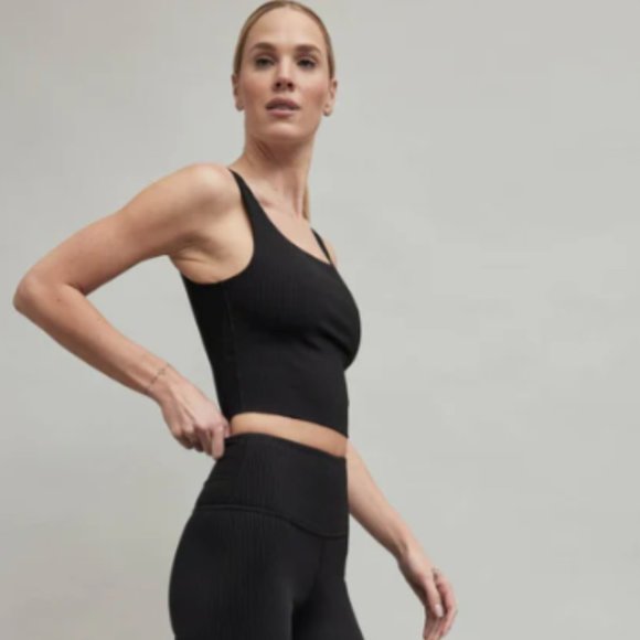 The Ribbed Tank from Carbon38 is a body-hugging crop top with a scoop neckline and back. A soon-to-be staple in both your workout ensemble and everyday wardrobe, this soft and textured top features a breathable shelf bra for bonus support.