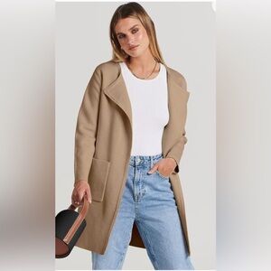 CARCILIA AMAZON Tan Woman Open classic casual pocket midi sweater cardigan
