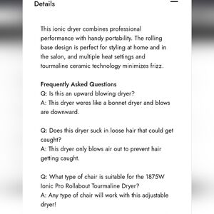 Black rollabout tourmaline dryer with adjustable stand. Ionic technology for professional results.
