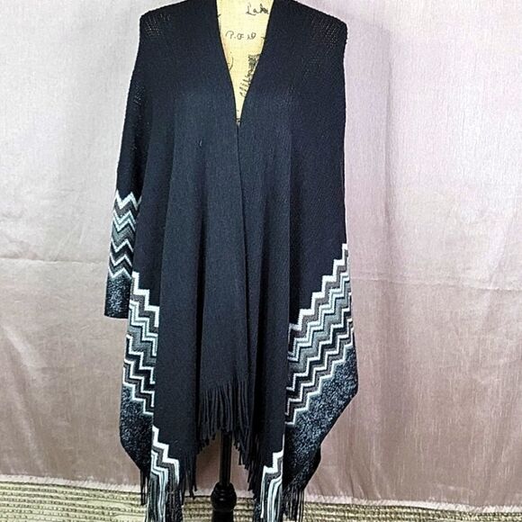 CAREN SPORT Fringed Chevron Cape OS Plus