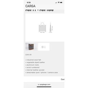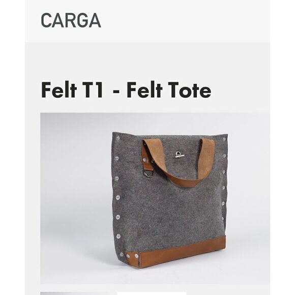Keywords: CARGA, Felt Tote Bag, Gray Tote, Brown Leather Trim, Snap Closure, Casual Tote, Everyday Bag, Modern Tote, Designer Tote, Leather Handles, Felt Bag, T1 Tote