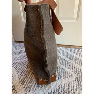 CARGA Felt T1 Tote Bag Gray Brown Leather Trim Snap Closure Casual