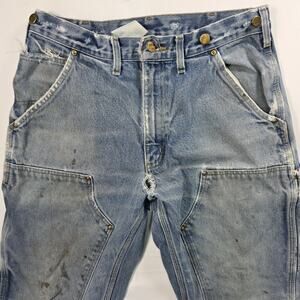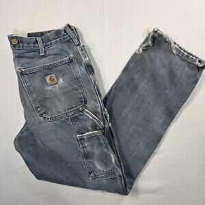 CARHARTT 100115 US Mens 31 x 31 Blue Rugged Flex Relaxed Logger Jeans DISTRESSED