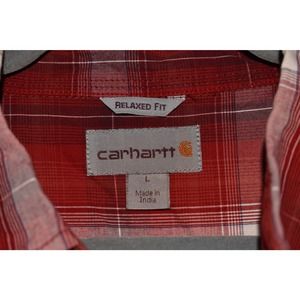Introducing the Carhartt Relaxed Fit Short Sleeve Lightweight Plaid Shirt in Red, available in Men's size Large. Elevate your casual wardrobe with this versatile and durable shirt from Carhartt. Crafted with a relaxed fit and short sleeves, this shirt offers both comfort and style for everyday wear. The lightweight fabric makes it ideal for warmer days, while the classic red plaid pattern adds a timeless touch to your look. Designed with Carhartt's renowned attention to detail and quality construction, this shirt ensures durability and long-lasting wear. Whether you're working outdoors or enjoying a weekend adventure, this Carhartt shirt is the perfect choice for effortless style and comfort. Upgrade your casual attire with the Relaxed Fit Short Sleeve Lightweight Plaid Shirt and enjoy both versatility and durability in one essential piece.