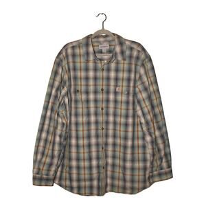 CARHARTT $60 Relaxed Fit Plaid Button Down Long Sleeve Work Shirt Blue Men's XL