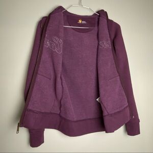 CARHARTT Burgundy Long Sleeve Logo Zip Up Hoodie Size XS