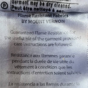 14.75-ounce, FR denim: 88% cotton/12% nylon