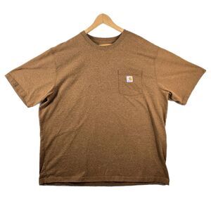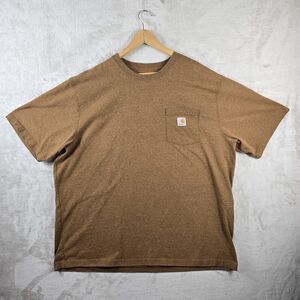 CARHARTT Loose Fit Short Sleeve Pocket T-Shirt Heather Brown Work Wear Mens 2XL