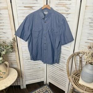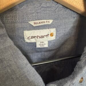 CARHARTT Men's 2XL Relaxed Fit 100% Cotton Short Sleeve Button Down Shirt Blue