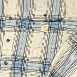 Rugged and durable Carhartt long sleeve plaid shirt in a 2XL Tall fit, designed with extra length in the torso and sleeves for better coverage while working or layering. Classic button-front style with dual chest pockets and signature Carhartt logo patch. 100% cotton, mid-weight, and built to last — no flaws, great condition.