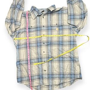 CARHARTT Men’s Tan Gray Blue Plaid Long Sleeve Button Front Work Shirt Loose Fit