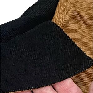 • BROWN khaki heavyweight fabric. Has black corduroy collar.