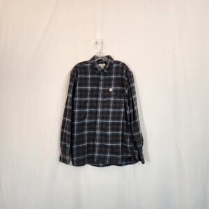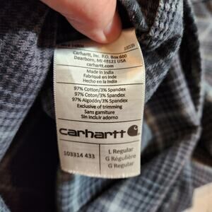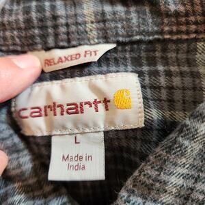 CARHARTT Relaxed Fit Black Grey Plaid LS Button Down Workwear Mens L FLAWED